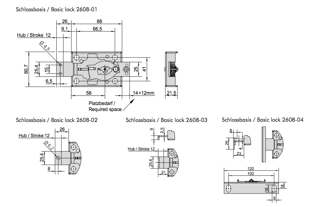L’OPTIMA 2608 suit un principe de construction modulaire. Cela consiste en 4 plates-formes de serrure et 3 couvercles de serrure pouvant être combinés en différentes configurations. Lorsqu’il est équipé de tringles, la serrure fournit un verrouillage sur trois côtés. Dans toutes les versions, le cache-serrure sert également de base de montage pour la serrure.